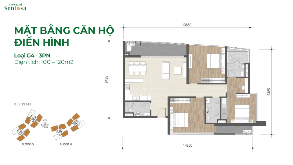 Diện tích từ 48m2 – 143 m2 có thiết kế từ 1PN-3PN.